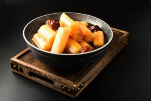 2、焯水可去除山藥的淀粉,使其更加爽脆可口。