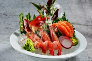 主料:三文魚、基圍蝦、大閘蟹、扇貝、海螺、蛤蜊、紫菜、海帶