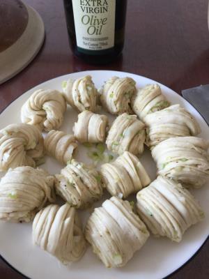 8. 將花卷擺放在蒸籠上,保持適當間距,以防粘連。