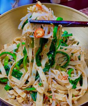 (3)將菠菜、豆腐放入碗中,倒入調(diào)味汁,拌勻即可。