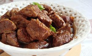 2、醬牛肉:將牛肉切塊,焯水去血水,加入生抽、老抽、料酒等調料,煮至入味。