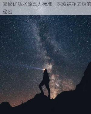 在日常生活中,水是我們不可或缺的自然資源,它不僅是維持生命的重要元素,也是健活的基石,市場上的水源種類繁多,品質(zhì)各異,怎樣的水才是真正適合我們的呢?本文將從五個方面為您揭秘優(yōu)質(zhì)水源的五大標準。